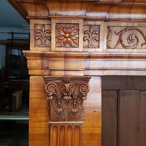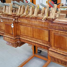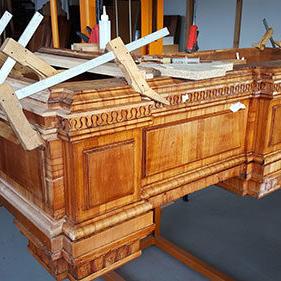 – lose Profile am Sockelelement niedergeleimt, lose Profile und Furniere am Gesimselement gefestigt etc.